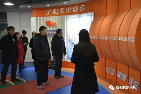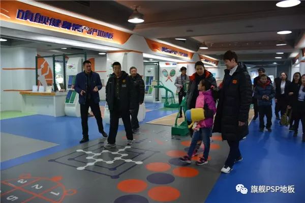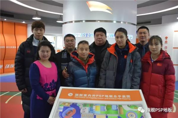 2017年12月30日,保定市體育局局長與七位保定籍世界體育冠軍體操世界冠軍范紅斌、蹼泳世界冠軍單勇、乒乓球殘奧冠軍葛楊、跆拳道世界冠軍李悅、游泳亞洲冠軍王大力、游泳亞洲冠軍郝運、跆拳道全國冠軍任丹丹、蒞臨旗艦,并參觀了旗艦整體辦公環境。工作人員為冠軍詳細介紹了旗艦室內外PSP地板展廳。
