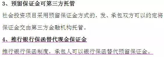 2017年7月04日住房城鄉建設部、財政部發布新版《建設工程質量保證金管理辦法》中也已明確推行銀行保函制度,銀行保函可替代預留保證金。