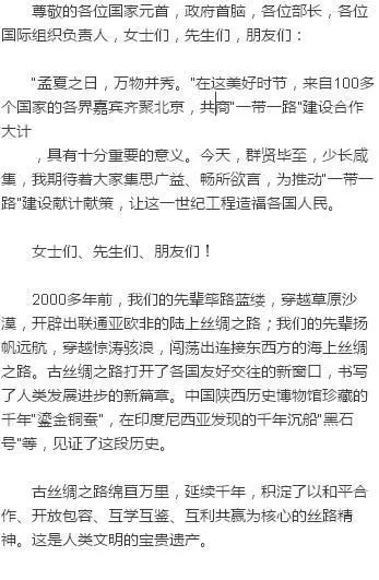 上午,在“一帶一路”國(guó)際合作高峰論壇開幕式上,習(xí)近平主席發(fā)表題為《攜手推進(jìn)“一帶一路”建設(shè)》主旨演講。