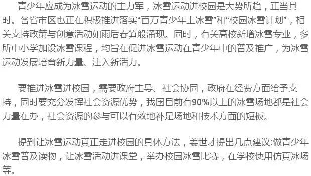 冰雪運動是青少年體質健康重要的載體,也是未來工作發展的重點。加大冰雪推進力度,能夠為青少年體制健康、體育課和課外鍛煉的強化做出貢獻。