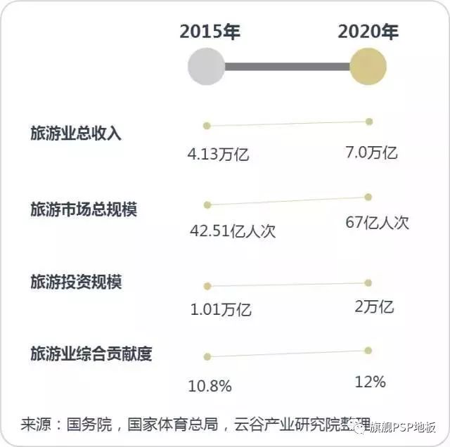 據國家旅游局統計,2016年我國旅游業實現總收入4.65萬億,較2015年增長11.4%。全年旅游投資超1.2萬億元,旅游業對GDP的綜合貢獻為10.8%。到2020年旅游業總收入將達到7.0萬億,旅游市場總規模達到67億人次(平均每人每年旅游約5次),旅游投資規模達到2萬億,旅游業對GDP的綜合貢獻達到12%。未來4年,伴隨著多項政策的實施和國民經濟的進一步發展,我國旅游業將進入了提質增效的攻堅階段,尤其是在“旅游+”、“一帶一路”旅游合作等戰略背景下,中國旅游市場的巨大紅利正在并將持續釋放,而近幾年興起的體育旅游、小鎮旅游也將成為新時代的寵兒。