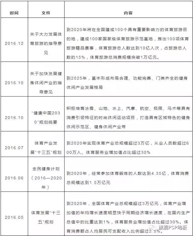 作為一個關乎國計民生的產業,體育產業近年來備受國家重視,鼓勵全民健身、參與體育運動、提高全民身體素質成為了很多地方政府工作的重點。2014年46號文出臺之后,國家頻頻發布有關促進體育產業、促進體育消費、引導社會資本投資體育產業等方面的政策或規劃。