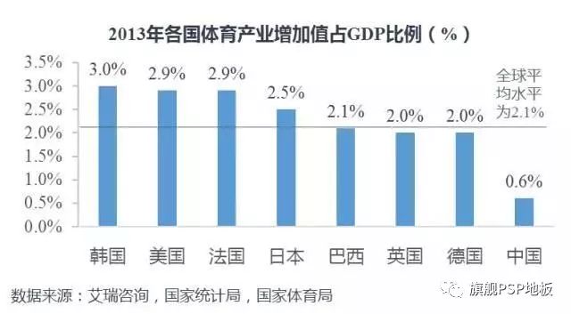 然而,這一比重遠低于全球平均水平2.1%。與美、歐、日相比,中國體育產業對國民經濟貢獻過低。有明顯的差距意味著有很大的提升空間。
