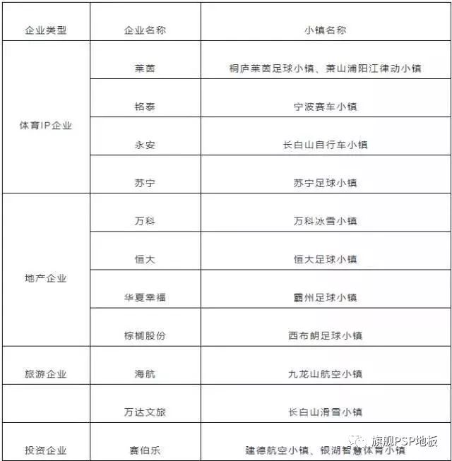 當前涉足體育小鎮建設的企業既有體育IP企業、地產企業,又有旅游企業和投資企業。因體育小鎮的投資門檻較高,一般為20億元以上(不含地產類投資),所以投資企業小鎮的基本都是產業龍頭企業,如萬科、恒大和華夏幸福等。從企業類型來看,地產企業和體育產業企業占比較高。