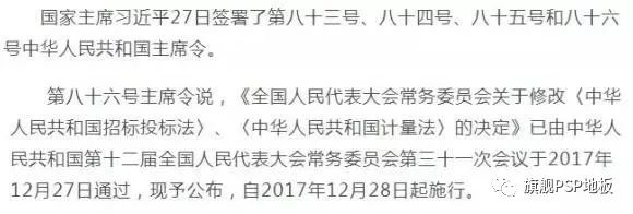 這意味著2017年9月20日改革委就修改《招標投標法》及《招標投標法實施條例》的征求意見稿,已經簽署,2017年12月28日起正式施行。