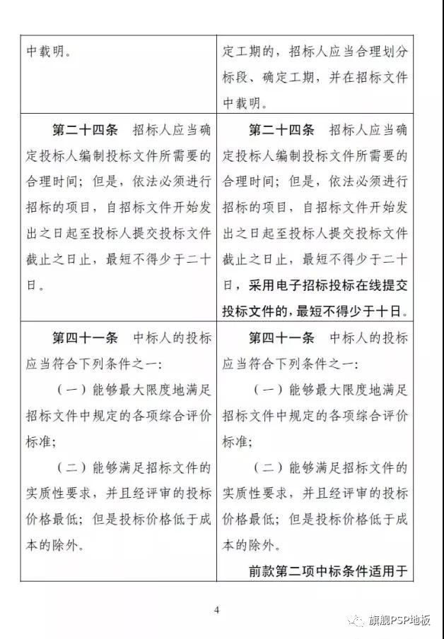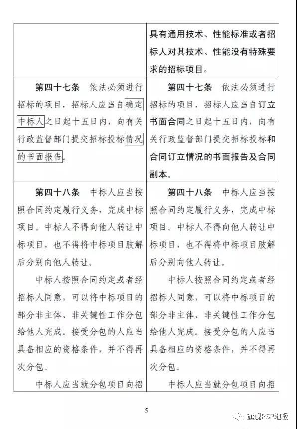 以下是《招投標法》和《招投標實施條例》修改前后對照表,請大家轉發保存:
