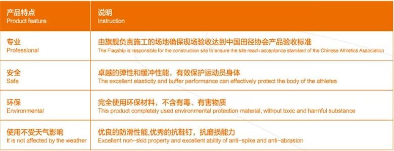 專業(yè):具有強韌的彈性層及緩沖層,可對抗強勁沖擊。通體耐磨,耐磨縮性高,不會由于田徑器械的重壓而無法恢復(fù)彈性;
