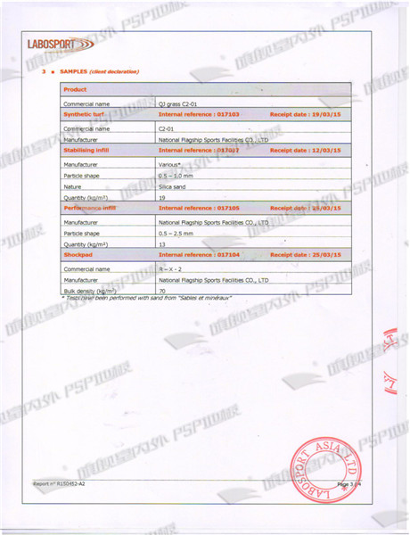 人造草坪LABOSPORT檢測報告 |